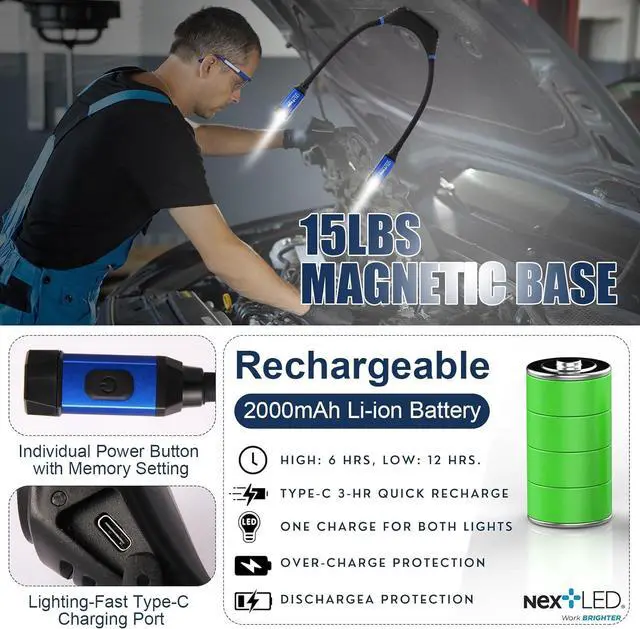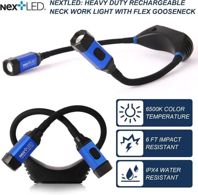 CONVENIENCE]: The NextLED NT-6633 Heavy Duty Rechargeable Neck Light offers a wrap-around design, providing hands-free operation. Ideal as an LED mechanic light, it allows you to focus on tasks without holding a flashlight.
