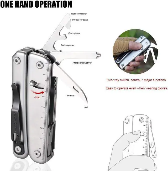 - OUTDOOR ESSENTIAL: Quick access to the knife, and the good size blade actually came really sharp so no additional work was required. EDC multi-tool with belt clip for camping and hiking.