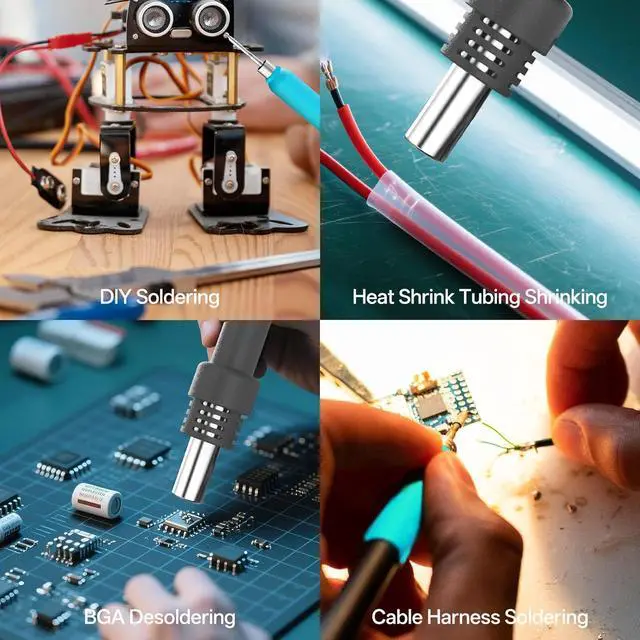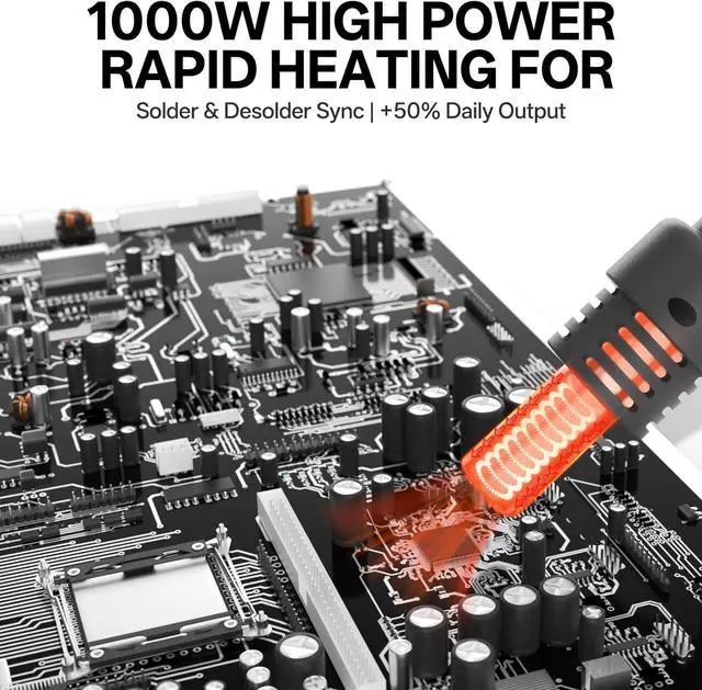 - 1000W Soldering Station High Power & Rapid Heating: With a total output power of 1000W and 110V voltage, this station delivers fast and efficient heating, significantly reducing wait times and improving productivity. The hot air gun utilizes a pump-driven airflow system for quick temperature rise, making it ideal for demanding soldering and desoldering jobs.