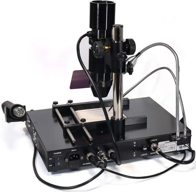 - Advanced Features: Intelligent Heat Control; Interior processed with SMT Dual Board Technique (enhanced safety and stability); Temperature Calibration; Exclusive Hot Air Gun Fail-Safe Protection; Power-conserving LED lamp to brighten the details; Dual-Axle design to provide flexible support of PCB;