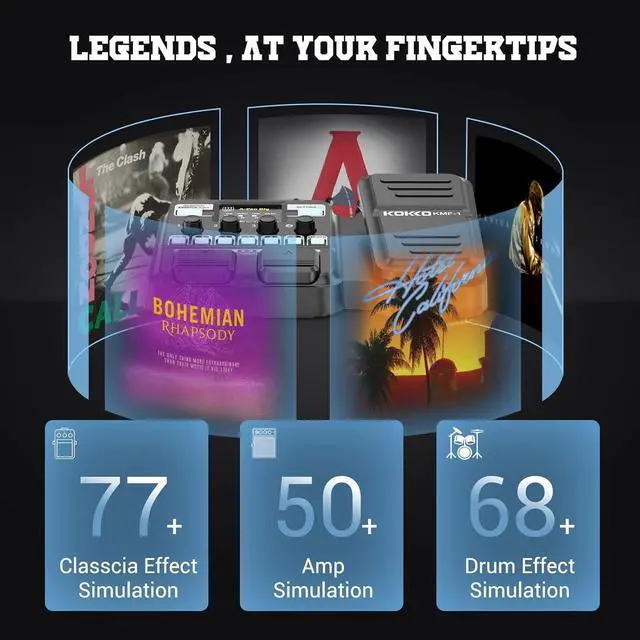 8 EFFECTS MODULESOur MG-100 guitar pedal offers all guitar effects, including a variety of distortion, compression, modulation, delay, reverb, amplifier, and cabinet models. Each module has several effects, covering 58 effects in total; Up to 8 effects can be used simultaneously. falseTAP