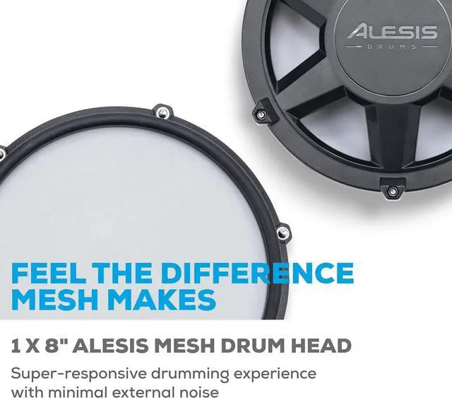 - Acoustic Drum Feel without the Noise - All-mesh drum pads deliver the most responsive, enjoyable playing experience with minimal external noise, so you can practice whenever you like