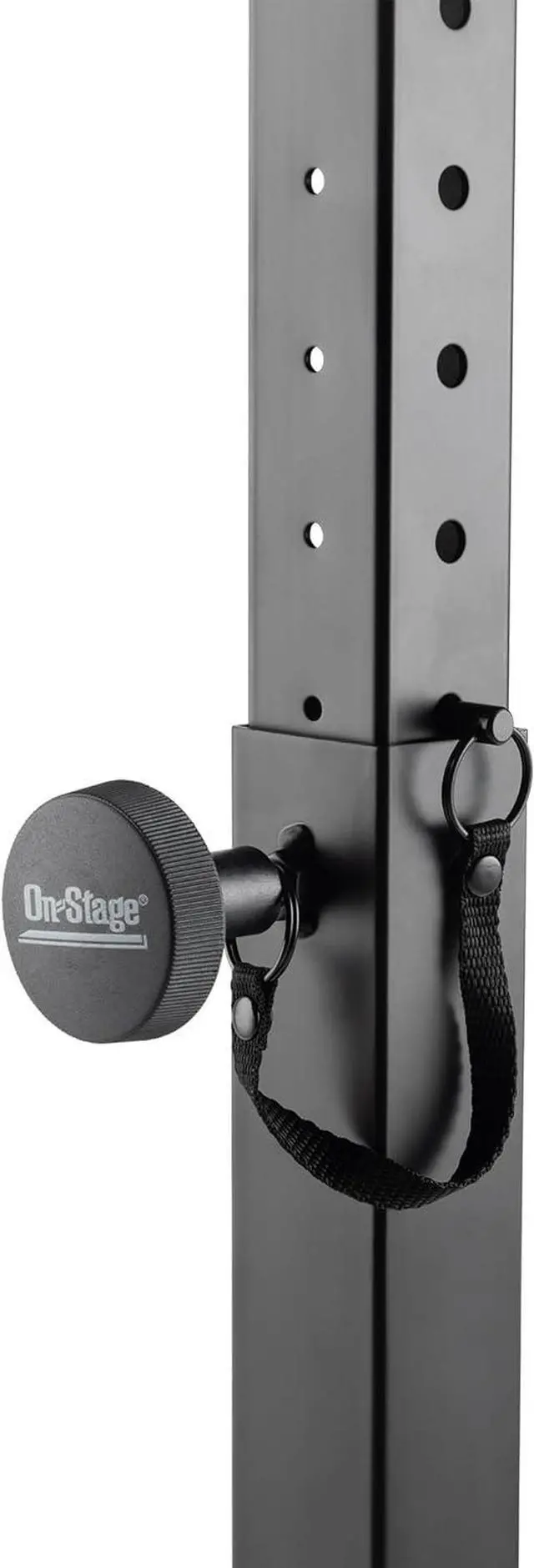 Our KS6150 is a low profile pedestal-style stand that's perfect for electronic musicians. Its steel platform features an adjustable width and tilts up to 15 degrees to accommodate a wide variety of instruments and playing styles. Mini synths, MIDI controllers, samplers, mixers... the KS6150 is the professional solution for any small-format device. Other features include a wide stable base with non-slip rubber feet, height adjustment from 23" to 36", steel construction, and over-sized friction locking knobs with security pins.
