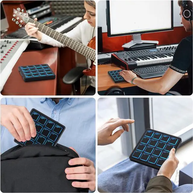 - Portable Controller The Pocket Pad only 4.1 * 4.1 Inch and 0.28 pounds, It's Built-in rechargeable battery, 16 hours working time, rechargeable and connected mode, You can easily throw this ultra-portable MIDI controller into almost any bag and take it with you to the studio, coffee shop, or hotel to create music.