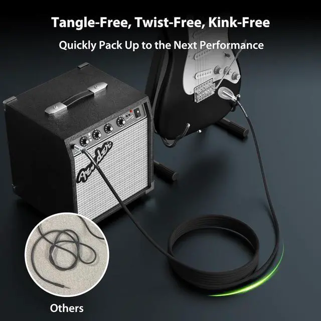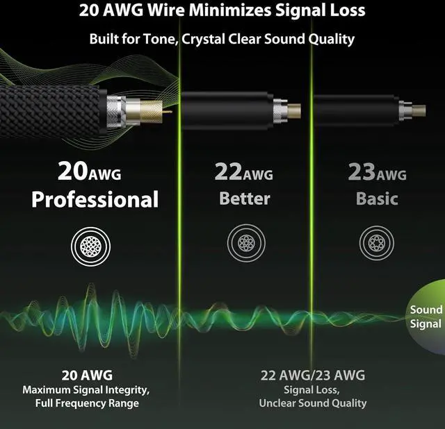 - [Professional-Grade 20 AWG] Unlike the lowest level 23 AWG or even better 22 AWG cables, our instrument cable is crafted with premium 20 AWG wire to ensure minimal signal loss and exceptional audio clarity. This is the same high-quality wire used in professional setups, preserving the full richness of your audio. Ideal for musicians who demand the best in tone and performance.