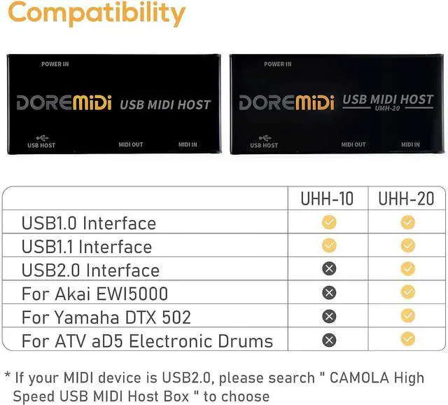 - Excellent Compatibility This high speed Midi host box is compatible with all USB MIDI devices with USB 1.0 / 1.1, MIDI Din compatible with all musical instruments with MIDI standard interface.