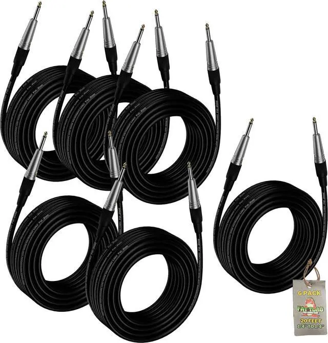STAND OUT WITH A HIGH-PERFORMANCE GUITAR AMPLIFIER CABLE WITH QUARTER INCH GOLD GUITAR JACK: Unlike most guitar wires with silver-tipped connections that dont last very long, each of these standard guitar and speaker cables features a gold-tipped metal plug to ensure long-lasting performance and premium durability that give you that satisfying click so you know when youve got a secure lock into the jack. Suitable for acoustic or electric guitar, bass, keyboards, and more. THE BEST GUITAR AMP CORD OR GUITAR PEDAL CABLE TO YOUR ELECTRIC GUITAR AMP: This six (6) pack of electric guitar cables are the perfect solution for any musician. These instrument patch cables can be used as amplifier cords, guitar speaker cables, or bass guitar cables. If youre looking for a clean sounding amp cable that will suit your needs and give you the best value, then you need to look no further!