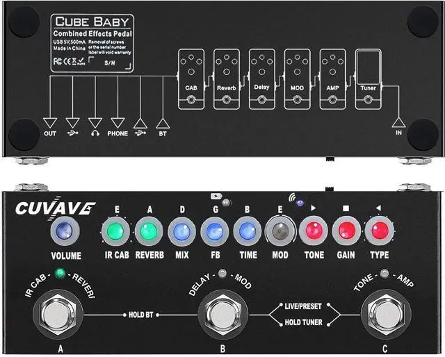 Long Working TimeThis guitar effect pedal has a built-in battery and supports charging by a power bank or mobile phone adapter. It takes 2 Hours to fully charge one time, and can work 6-8 Hours. It supports Charging and Working at the same time. falsePortable Multi-effects Ultra-portable and easy to use, the Cube-Baby guitar pedal delivers pro-level tones everywhere you play. Equally suitable for beginners, weekend warriors, and traveling players, it packs Premium sound in a compact and rugged package. false- Guitar Multi-effects PedalThis guitar multi effect pedal with 9 class IR, and two effects of modulation (chorus, phase shift)one tape delay, one reverb effect.