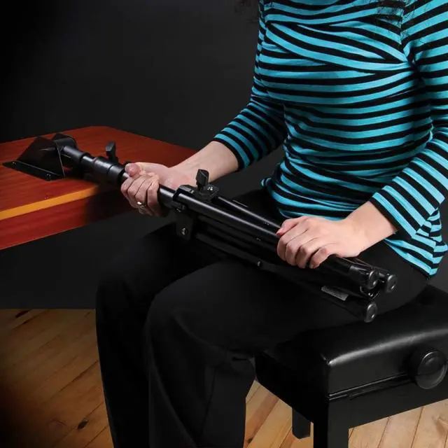 Adding to our line of conductor stands, the SM7312W offers an oversized solid wood bookplate with a rosewood finish, which will accommodate standard and Oversized sheet music. The angle adjustment tension system makes for easy removal from the upper shaft. The stand also features a folding tripod base for convenient storage and travel, a high impact plastic leg housing, friction locking knobs, leg support straps and non-slip rubber feet.