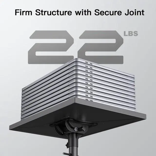 Max Load 22LBS-This outdoor projector stand is made of sturdy metal and designed with a reinforced tripod stand structure which is capable of supporting up to 22lbs. The tray of this projector tripod stand is 16in (W) x 11in (L) in size and features raised edges that helps secure devices on the plate. Max Stability-This projector stand is designed with a wide base with anti-slip rubber feet to achieve maximum stability, which enables you to put the laptop tripod stand on regular floor, carpet and even on the outdoor meadow. No worry for the risk of tip-over or slipping of your property and set no limit on where youd put the projector tripod stand in use.