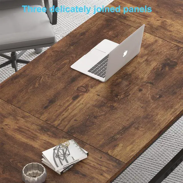 Quality Assurance: Each component of this simple large computer table is clearly labeled, accompanied by detailed instructions and illustrations, facilitating easy assembly within 30 minutes or less. Additionally, we provide 24-Hour Professional Customer Service, 30-Day Free Return and 12-Month Quality Warranty for this long computer desk for 2 monitors. - Spacious Work Space & Leg Room: Measuring 31.5"D x 70.8"W x 29.5"H overall, this large rustic brown computer desk offers ample space to accommodate multiple monitors, pc, laptop, printers, files, books, lamps and any other office essentials, ensuring you have everything you need within arm's reach for enhanced productivity. The desktop is crafted from three meticulously joined panels, creating a cool cross-grain effect. Featuring two K-shaped metal legs with an open structure, this long home office desk provides ample leg room, promoting comfort during extended periods of use.