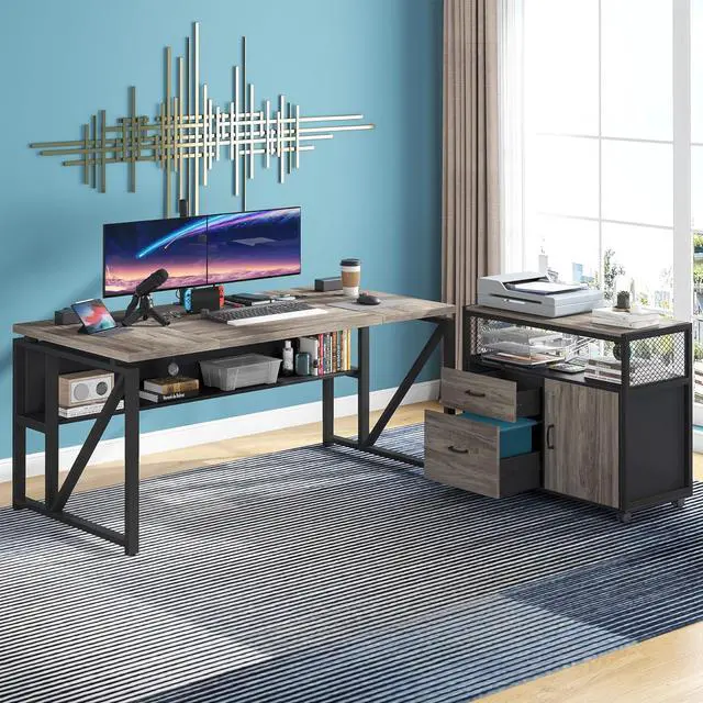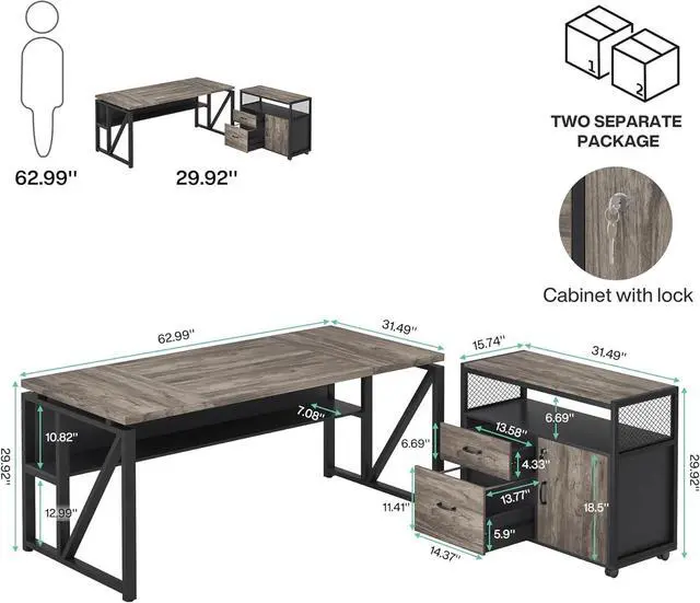 Home Offices Furniture Set: 63 inches computer desk and 32 inch filing cabinet, you will love the versatility of having 2 pieces that can be put together for an l-shaped desk to extend your workspace or separate for a different look.