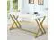 - Spacious Desktop & Flexible Leg RoomChunky tabletop provides a lot of work area for your computer, books, paperwork, printers, and desk organizers. Minimalist design is the essence of the modern home office desk: its simple, compact silhouette allows it to fit into spaces of almost any dimension or décor. Additional metal rail free your legs and make you work more flexibly. Just enjoy this white and gold writing study table, great for allowing tall guy plenty of leg room.