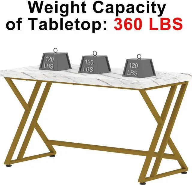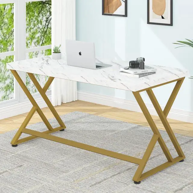 Various Space: With a modern sleek design, the white and gold faux mable desk fits into any decor for office, dorm, study, living room, and bedroom. Sturdy metal frame, Y shaped legs design. It is ideal for gaming enthusiasts. This industrial wood computer table is a perfect furniture for your home and provides you with a unmatched convenience.