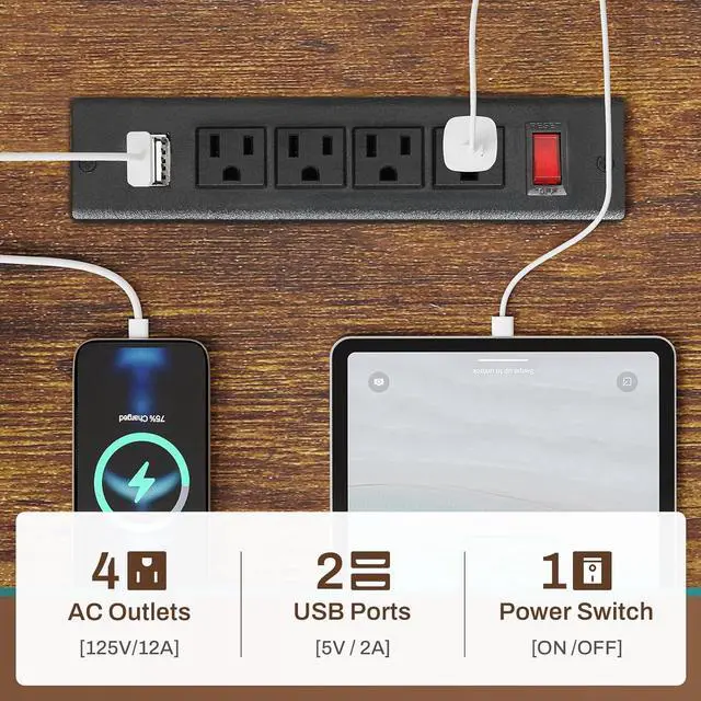 - Charging Port Our charging station includes 4 outlets and 2 USB Ports to provide power for up to 6 devices simultaneously. Also includes an on-off switch, thanks to the on-off switch, one-button power off to ensure safe electricity use, which strengthens security. Power outlet allows you to charge cell phones, tablets, notebooks, etc.