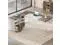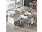 The Grey and white finish on the desktop, coupled with the white iron frame, and the addition of a unique fishbone pattern on the filing cabinet door, creates a stylish and sophisticated look.