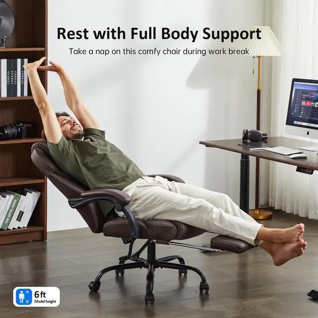 - Reclining and Adjustable: Adjust the backrest angle from 90° to 135° to suit your work and relaxation needs. The office chair also features a height-adjustable seat and a retractable footrest, allowing you to stretch out and relax during breaks.