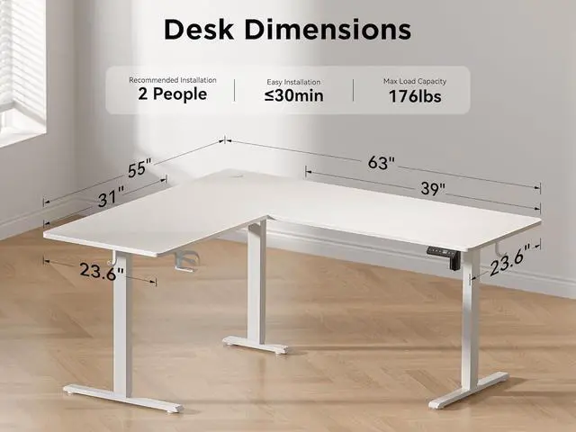 Spacious L-shape Workstation: WALKINGDESK L shaped adjustable height desk has plenty of space to work or game. L-shaped corner design is very nice in a corner at your home and maximizes help you to save space, and the round corner design better protects your family from hurting.