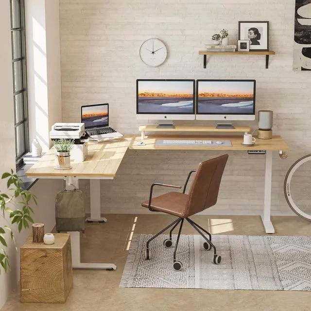 Casters: Swivel casters rotate 360 degrees which makes turning your desk mobile and your floor protected from scratches. falseFEZIBO 75 Inches Triple Motor L Shaped Standing Desk Reversible, Electric Height Adjustable Corner Stand up Desk, Sit Stand Desk Computer Workstation, White Frame/Natural Top