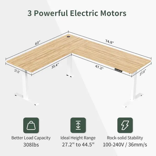 - Elegant Workspace: The L-shaped large work surface measuring 75" to provide ample room.