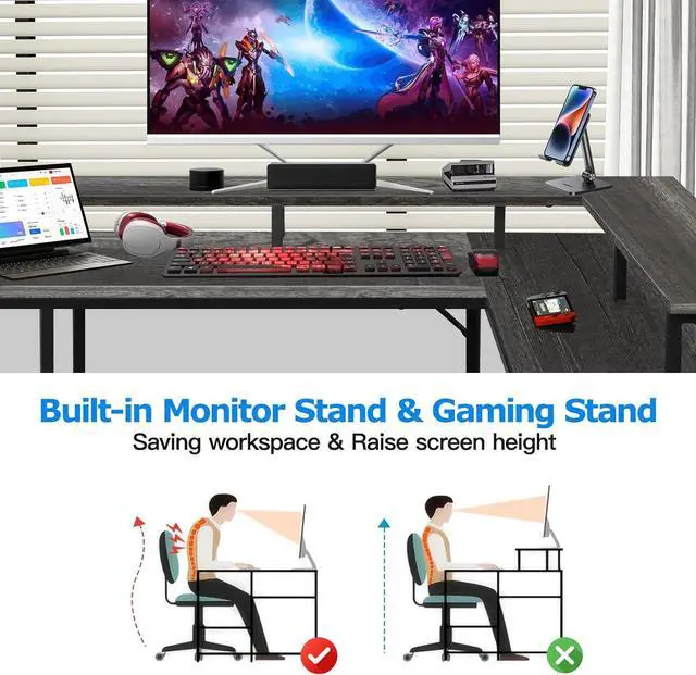 - Reversible L Shape Desk: With reversible design, this home office desk can be installed in either L Shaped or Long desk according to fit your space and needs. The tabletop stand and monitor stand provide extra storage space for your monitors, gaming accessories or office supplies