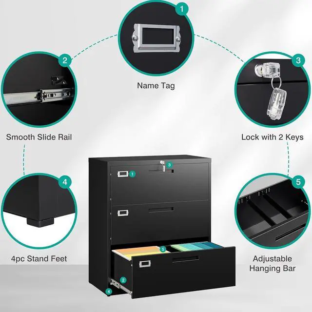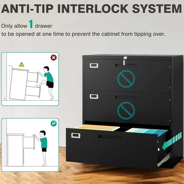 Wide File Cabinet: Deep & Wide lateral file cabinet is sturdy and durable, with an all-metal design; coated with electrostatic phosphorus-free epoxy spray coating, making it very strong and resistant to corrosion and rust; the top of the office vertical file cabinet can withstand up to 120 pounds the weight of. The sturdy construction makes this cabinet sturdy and durable, making it ideal for extended use in the home or office.