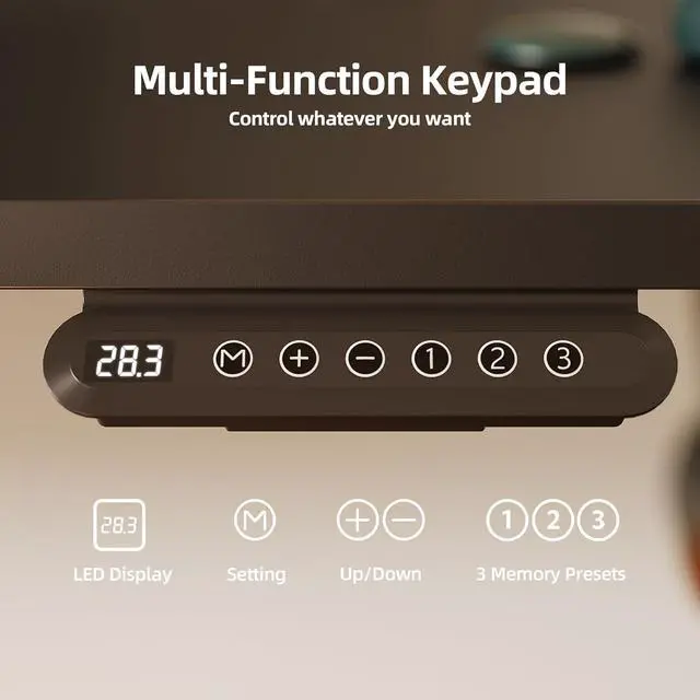 - Precise & Memory Electric LiftFreely choose the height of the electric standing desk from 28.3 inches to 46.5 inches. Set 3 programmable memory presets via rhe LED touchpad, which can quickly and accurately adjust to your preset comfortable height, catering to various scenarios, including work and leisure. INNOVAR height-adjustable desk is ideal for dynamic home offices, work stations, or collaborative spaces.