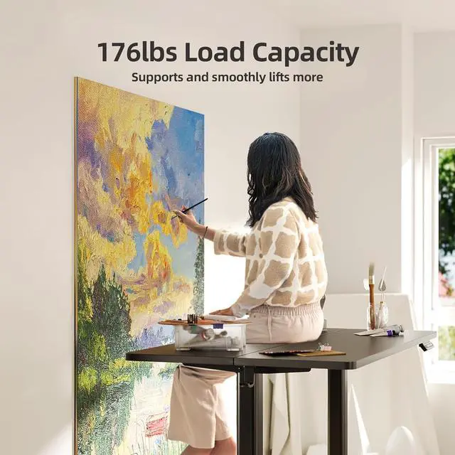 In addition, the stand up desk runs faster and more stably, allowing for smooth switching between heights. Easy AssemblyEvery package includes a height adjustable standing desk, an installation instructions and installation tools. With our installation video, the first-time users achieve rock-solid desk readiness in under 30 minutes. Any questions about INNOVAR rising desk, feel free to contact us through. - Excellent StabilityThe electric standing desk features a robust T-shaped steel frame and a durable wood desktop, holding up to 176 pounds. The wide desk foot design makes the adjustable table maintains good stability eliminating any distractions from wobbling even when at the full height.