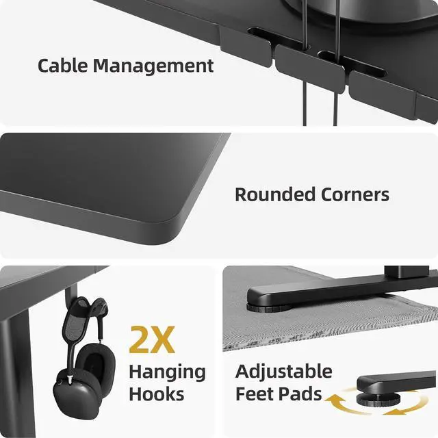 Ergonomic Working StyleThe sit stand desk is crafted from odor-free premium wood with rounded safety corners. The 48 x 24 Inches desktop provides ample room for dual monitors, printers, and office supplies. Integrated cable management includes dual wire-collection holes and 2 side-mounted hooks for headphones/bags to effectively reduce clutter. INNOVAR Height-Adjustable Desk revolutionizes workspace efficiency. Upgraded Motor As one of the most important components of the standing computer desk, we have upgraded the single motor from a brushed motor to a brushless motor. This upgrade extends the motor life to 7-10 years (60% energy-efficient compared to brushed motors) and requires no maintenance.