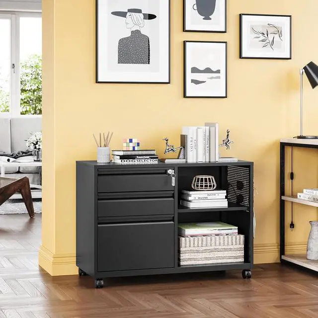 - Easy to Move and Assemble Cabinet is equiped with four rolling wheels. The mobile file cabinet can fix or move around your home office freely. The lateral file cabinet can be assembled quickly and easily by one person and features a convenient and uncomplicated installation procedure with all properly labeled components and installation instruction video and manua