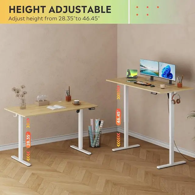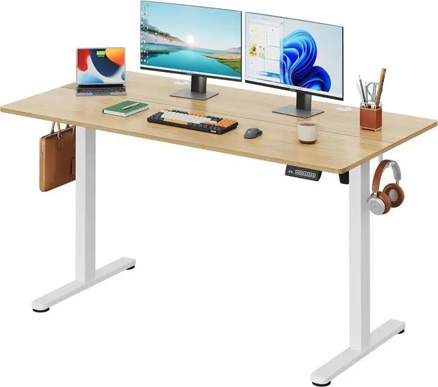 Electric Standing Desk, 55 X 28 Inches Adjustable Height Stand up Desk for Home Office, Large Ergonomic Sit to Stand Desk with Headphone Hook, 3 Memory Preset Computer Desk, Maple