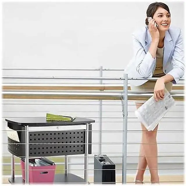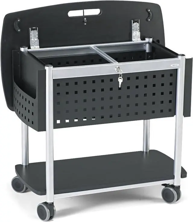- Easy mobility. Four Oversized swivel wheels allow easy movement between offices and conference rooms. Two of the wheels Lock to keep the cart in place when not in use.
