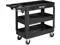 This versatile Service Cart is ideal for any job site. It is especially useful in the office, shop, at meetings, in the classroom, or outdoors on a project. This lightweight cart has 2 shelves to store items on with a maximum weight capacity of 275lbs per shelf. Industrial duty polypropylene construction resists scratches, dents and cleans easily. With 5" non-marring casters, this cart rolls smoothly and quietly without leaving marks on the flooring. The built in molded handles has compartments for tool storage and makes it easy to push, pull or maneuver through tight corners.