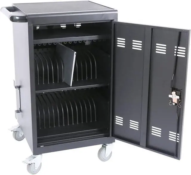 - MOVE WITH EASE: The charging cart with good quality universal wheel (2 fixed, 2 swivel ) makes them quiet enough and easy pushing during moving. It is quickly and easily transported even it's full loaded. The charging cart is not too big and bulky. Anyone can easily push it using the side handle. Teachers can easily transport it from room to room.