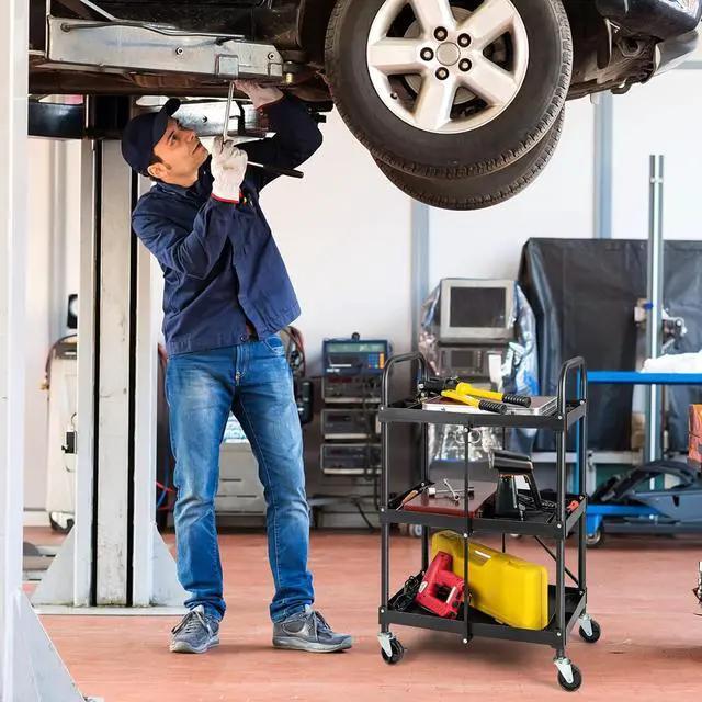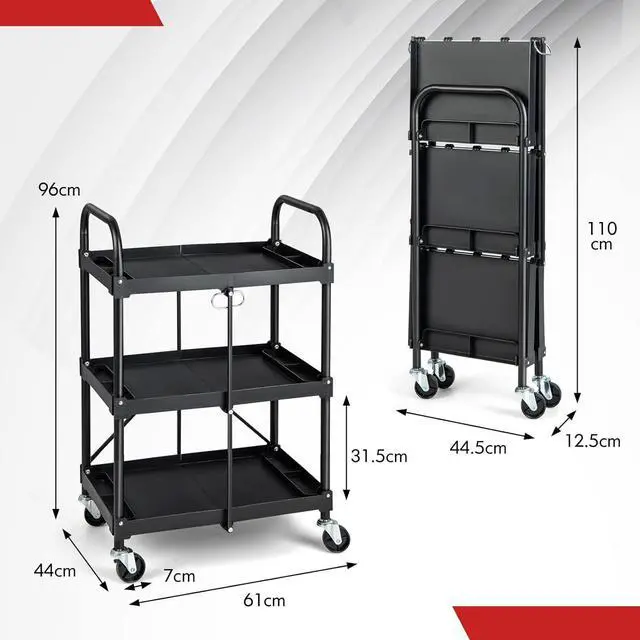 - Multi-use in Various Occasions With practical and classic design, our folding 3-tier storage cart can serve as a storage cart, grocery cart, tool cart, service cart according to your needs. Moreover, it is portable for multiple occasions, such as workshop, warehouse, office, laundry house, kitchen, et