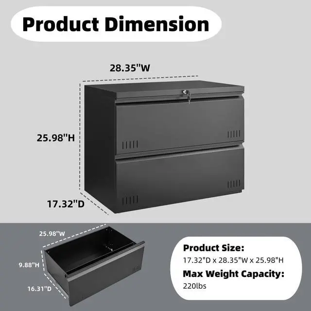 Ample Lateral Storage Space: Maximize your storage efficiency with the spacious lateral design of this metal file cabinet. Offering significantly more capacity than traditional vertical models, its wide drawers accommodate A4, Letter, and Legal-sized files with ease. Perfect for organizing large volumes of documents, office supplies, or personal records, this file cabinets for home office keeps everything neatly arranged and easily accessible. Whether in a professional office or at home, this file cabinets is the ideal storage solution for your needs.