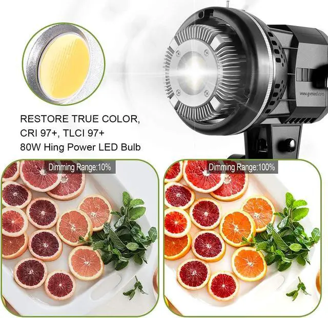 Focusable Lighting Range The GVM Studio Lighting Kit lamp head adopts LED integrated design, with low energy consumption and high brightness. The lamp head can be used without using a softbox. Studio Lighting Kit brightness button and a color temperature switch on the back of the lamp head, which can adjust the optimal brightness and color temperature according to different shooting needs.