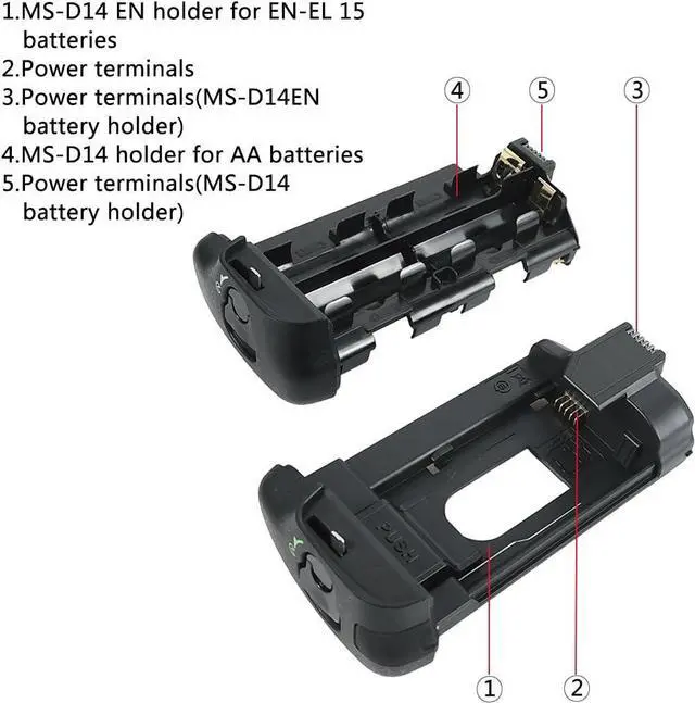 Holds one EN-EL15 Li-ion batteries or six AA Battery for extended shooting