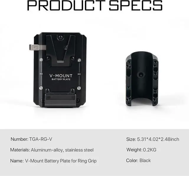 V-Mount Battery Plate for Basic & Advanced Ring Grip | Compatible with DJI RS4 PRO / RS4 / RS3 PRO / RS2 PRO | Longer Battery Life | Aluminum and Steel Build | TGA-RG-V (V-Mount Battery Plate)