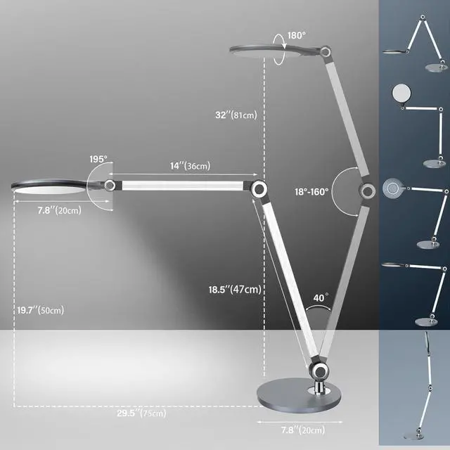 Multi-angle Adjustment & Touch Control Design: Flexible adjustment of various angles to meet lighting needs in different scenarios. The circular illuminator design makes the light more concentrated and bright, good for study and working. You can also set the brightness levels just by sliding the touch pad lightly.