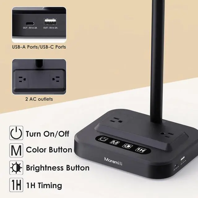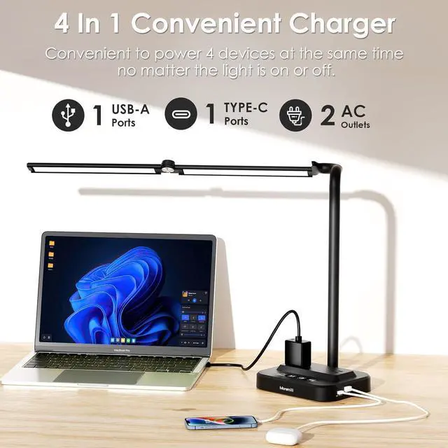 Adjustable Swan Neck Design: The lamp features an adjustable swan neck that can extend 180 degrees in both directions and swing 90 degrees up and down, providing a wide and customizable lighting area to suit any workspace.