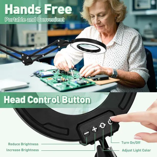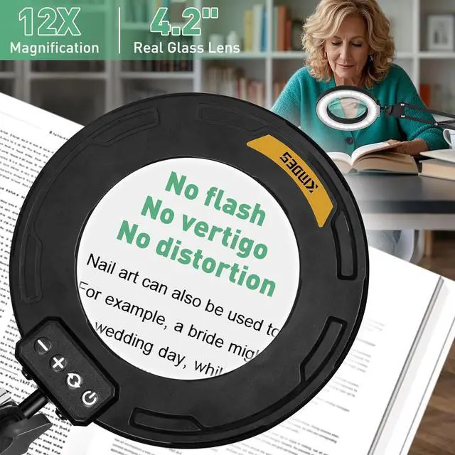 Real Glass Lens: This magnifying glass with light and stand comes with a 12X real glass lens that provides a distortion-free, high-definition view for intricate work. Perfect for crafting, miniature painting, and sewing, it increases clarityon every project.