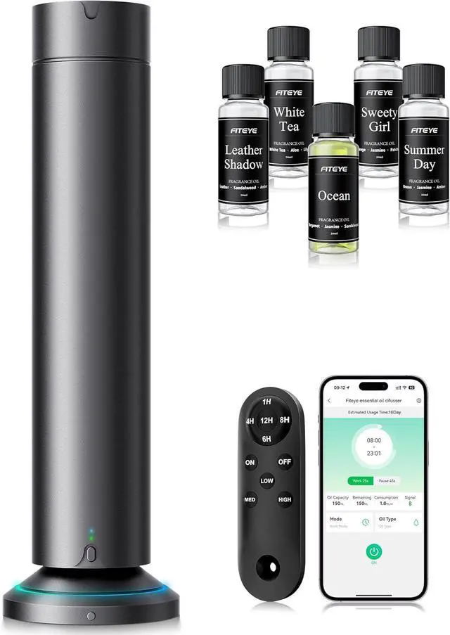 Pets and Child-FriendlyUnlike traditional aromatherapy diffuser for home, this scent diffuser doesn't require water or heating, preserving the pure properties of precious essential oils and ensuring the mist is completely cool and safe for you to breathe. It's pet- and child-friendly. Includes 5 x 20ml bottles of high-quality essential oil.
