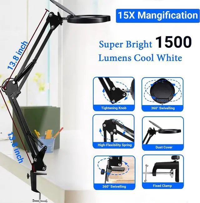 Space-Saving Clamp Design Instead of a bulky base, this magnifying lamp comes with a sturdy aluminum clamp that attaches easily to desks and worktables. Great for maximizing workspace in small studios, dorms, or hobby corners.