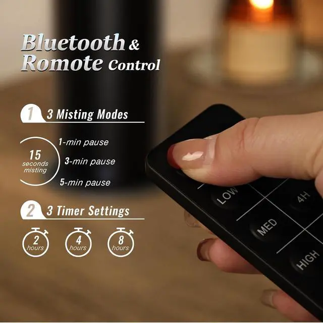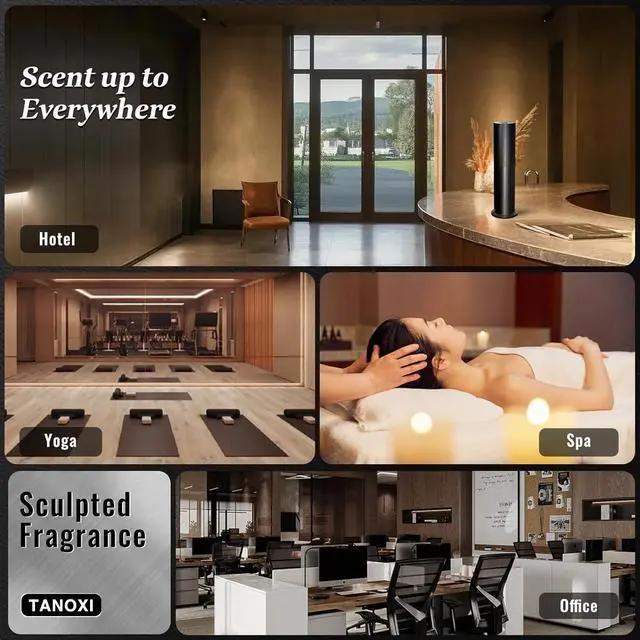 & -: With a generous 100ml capacity, our scent air diffuser can run for up to 30 days without needing a refill. It covers an impressive area of up to 2000 sq. ft., making it ideal for large rooms, offices, bedrooms, or commercial spaces. Enjoy long-lasting fragrance in every corner of your home or workplace.