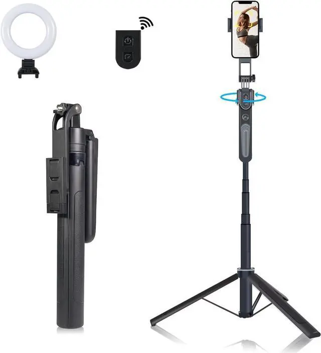 Versatile and Compatible with Android/iPhone - Extendable tripod with 360° rotation and it is easy to connect to your Android phones Samsung or iPhone for content creation activities, in the age of social media and content creation, it's great for live streaming, vlogging, family reunions, and outdoor activities. Meets a wide range of needs and encourages creativity.
