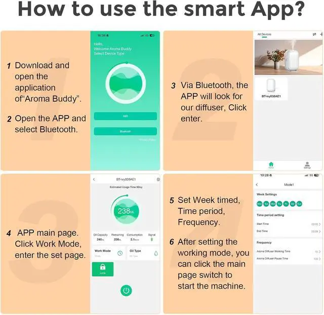 Smart Bluetooth APP Control - Pair this rechargeable oil diffuser with the "Aroma Buddy" APP via Bluetooth to remotely adjust modes, schedules, and mist intensity from your phone - ideal for tech-savvy users