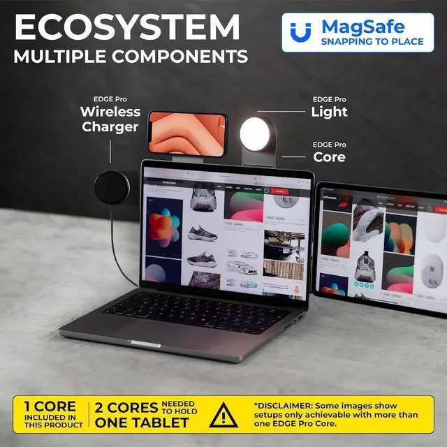 Includes: 1 EDGE Pro Core, 1 EDGE Pro Wireless Charger 60W with a USB-C/USB-C cable, 1 EDGE Pro Light with a USB-C/USB-C cable, 1 Metal plate, 1 Nano suction layer -plate and disc-, 2 Metal rings, 1 Metal disc, and 1 Plate remover