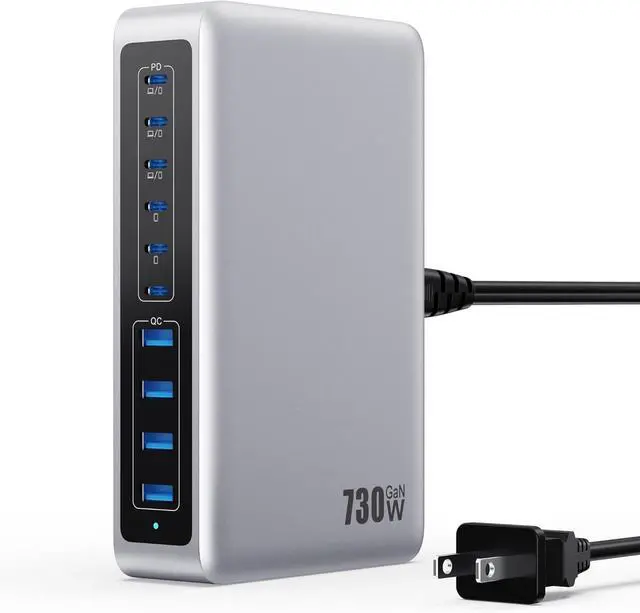Fast USB Charging Station with Lifetime Services1 x USB C Charger(10-IN-1, 730W), 1 x Power cord, 1 x Instructions. With this usb charger, no more hunting for outlets or lugging around a bunch of chargers anytime anywhere, you can say goodbye to tangled cables and messy clutter, getting an organized and clean desktop. Much simplify your life!