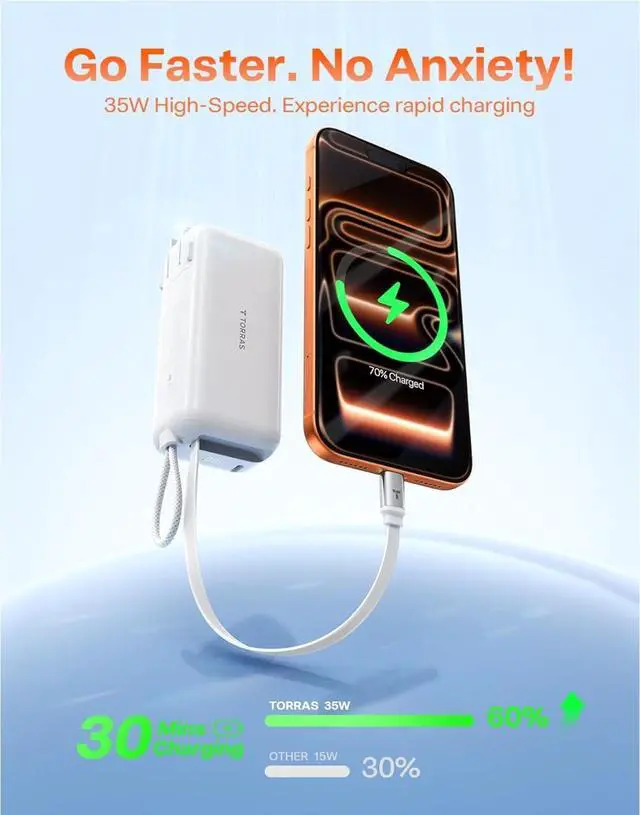 , Maximize flexibility with three smart charging modes: Power Bank Mode delivers a super-fast output, charging your iPhone up to 60% in just 30 minutes. Pass-Through Mode intelligently charges devices like your MacBook Air while simultaneously replenishing the power bank itselfideal for powering through your work or study sessions. Plug-in Mode with the foldable adapter lets you recharge the power bank anytime, anywhere theres an outletperfect for topping up during short breaks. No more waitingthis power bank adapts to your pace